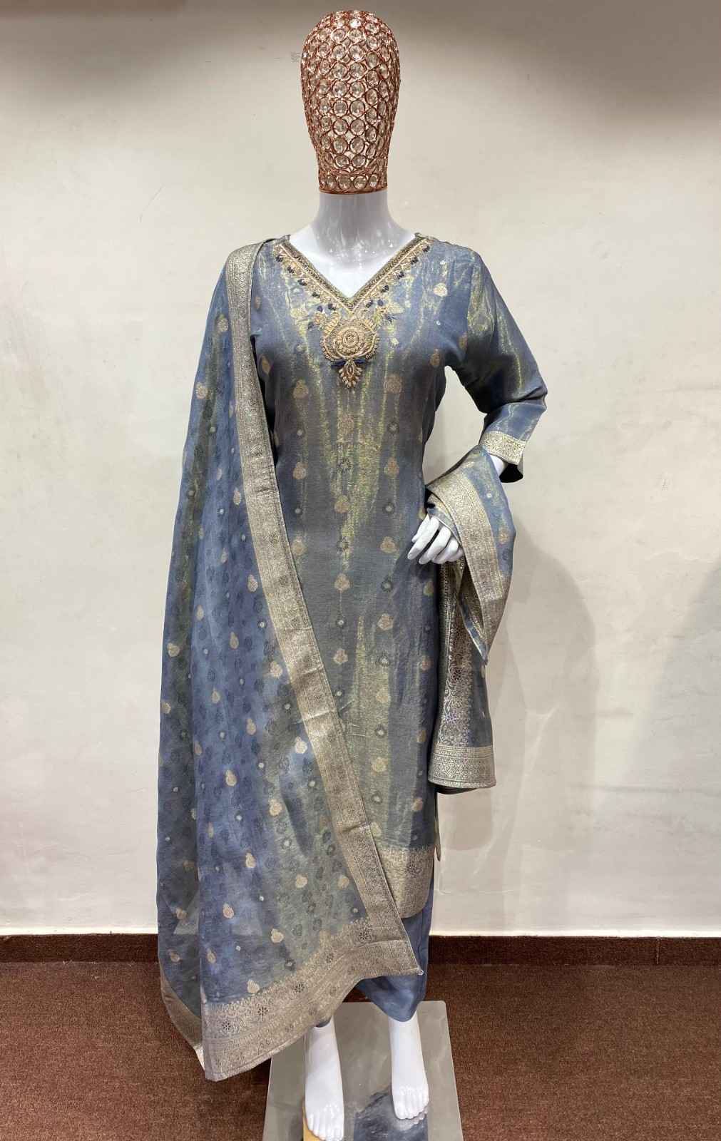 stunning grey tissue suit...