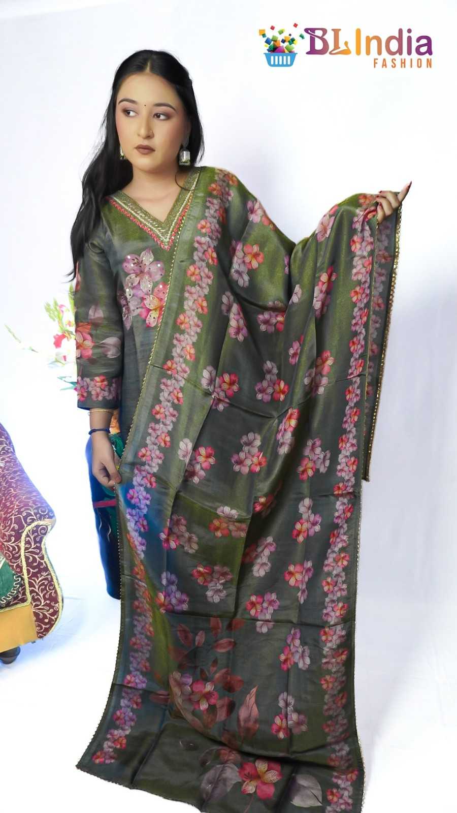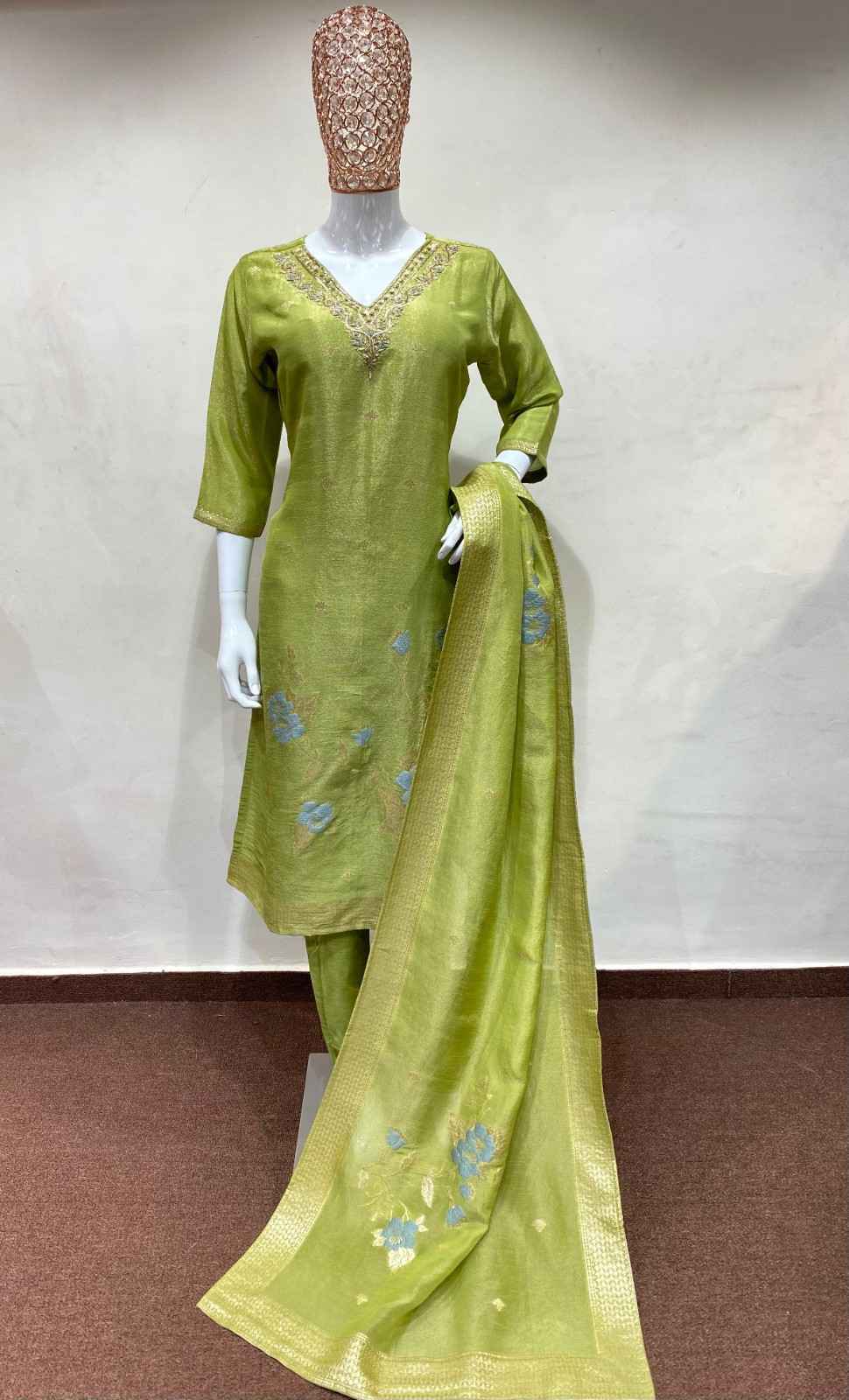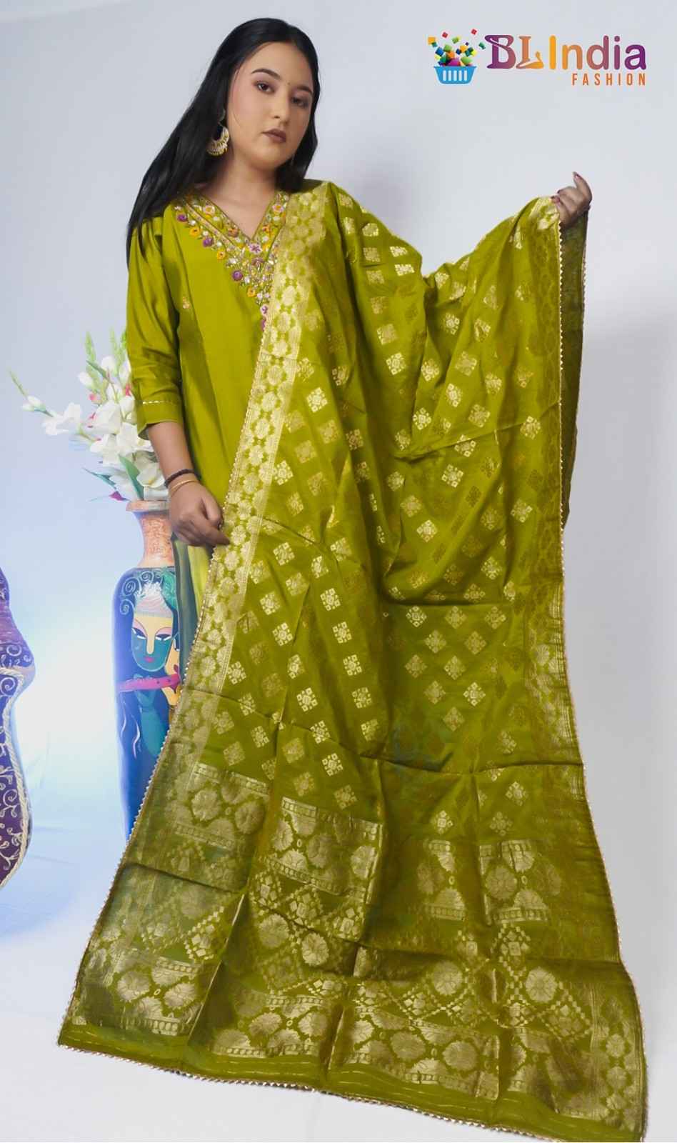 Olive Green Tissue Silk K...