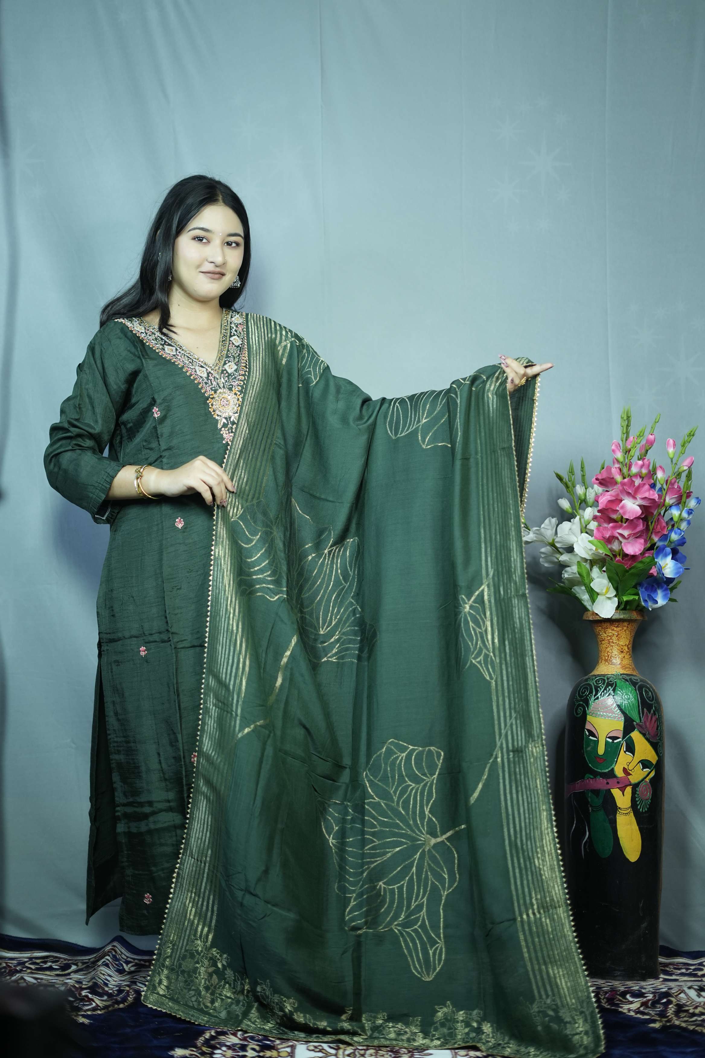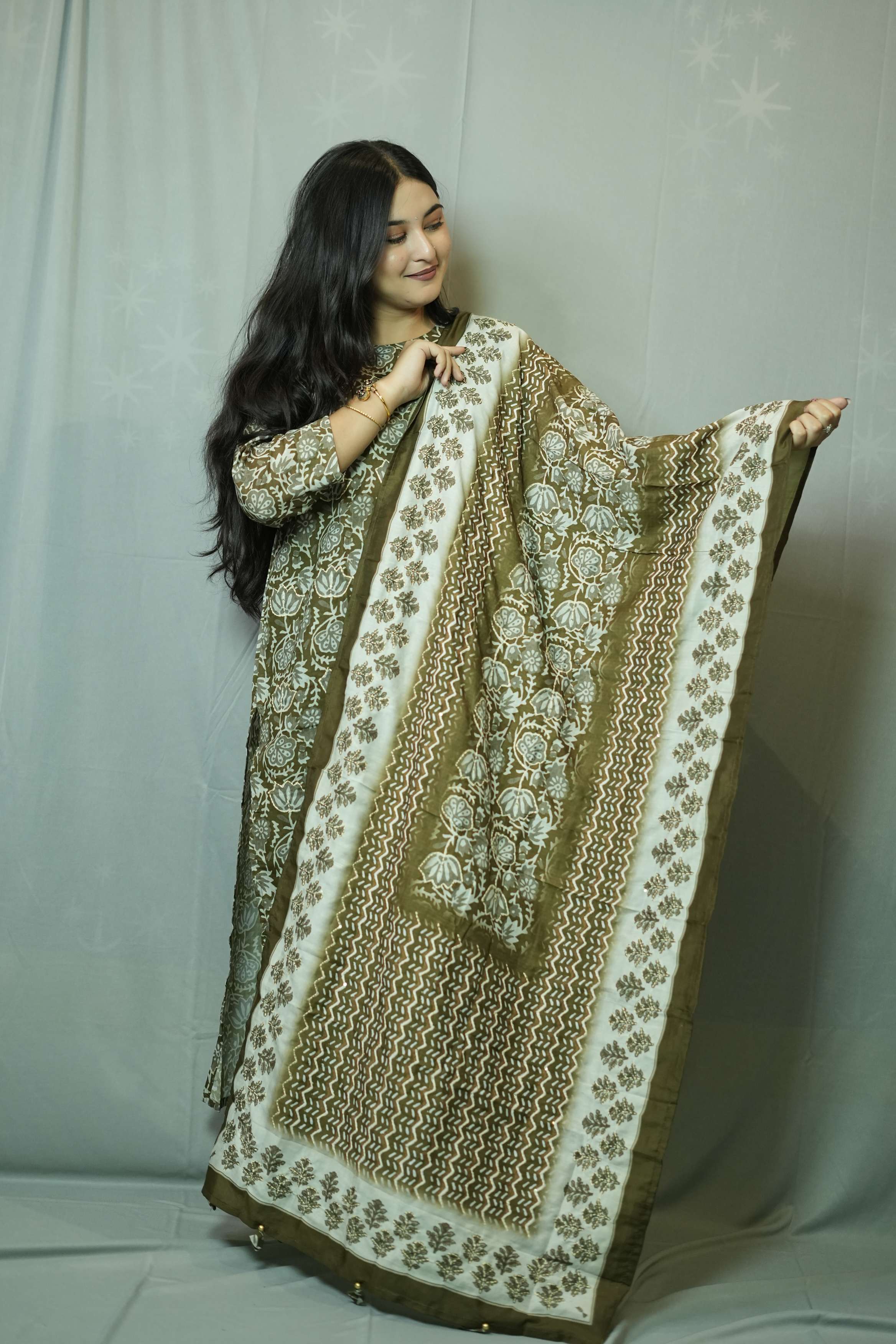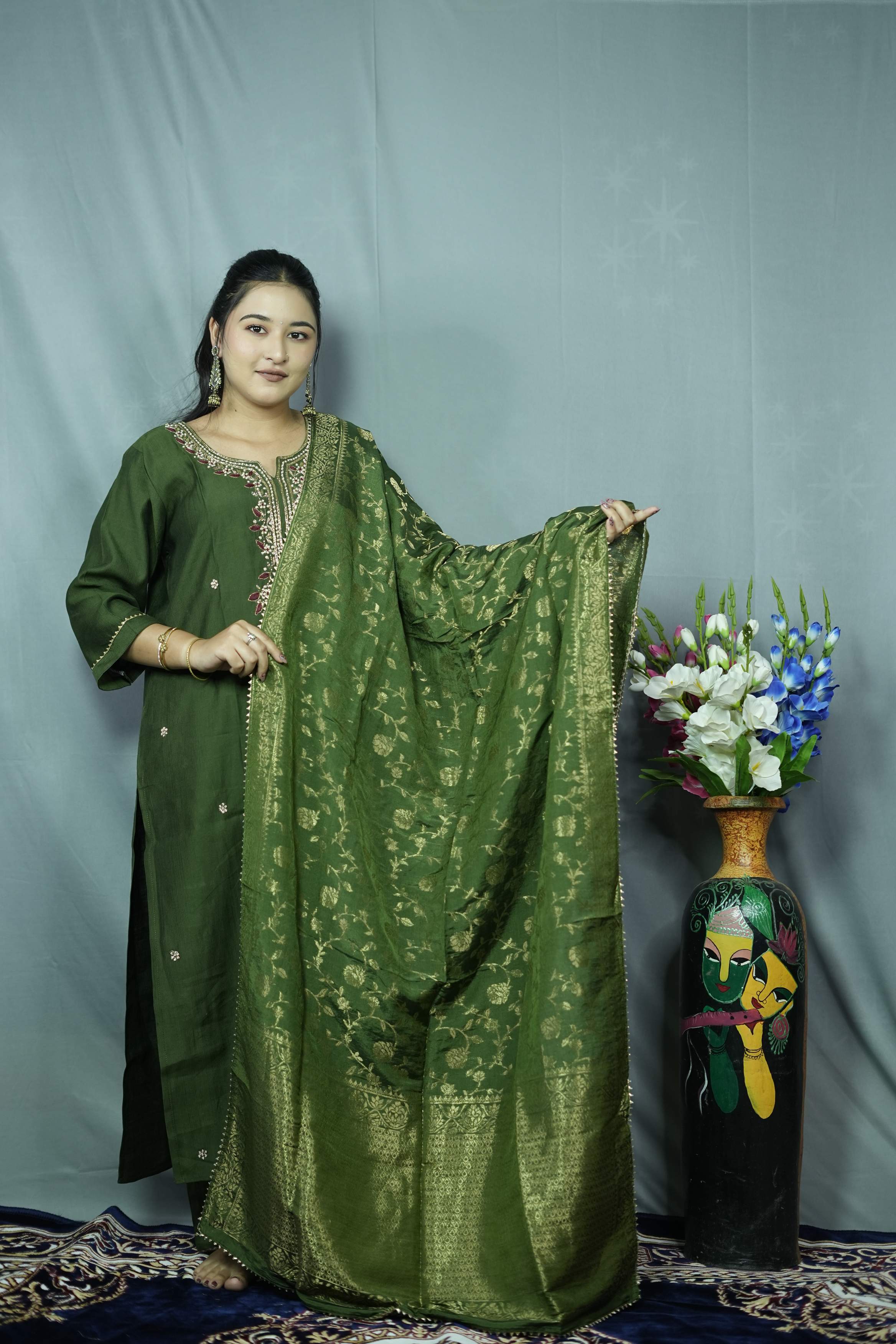 Olive Green Tissue Silk K...