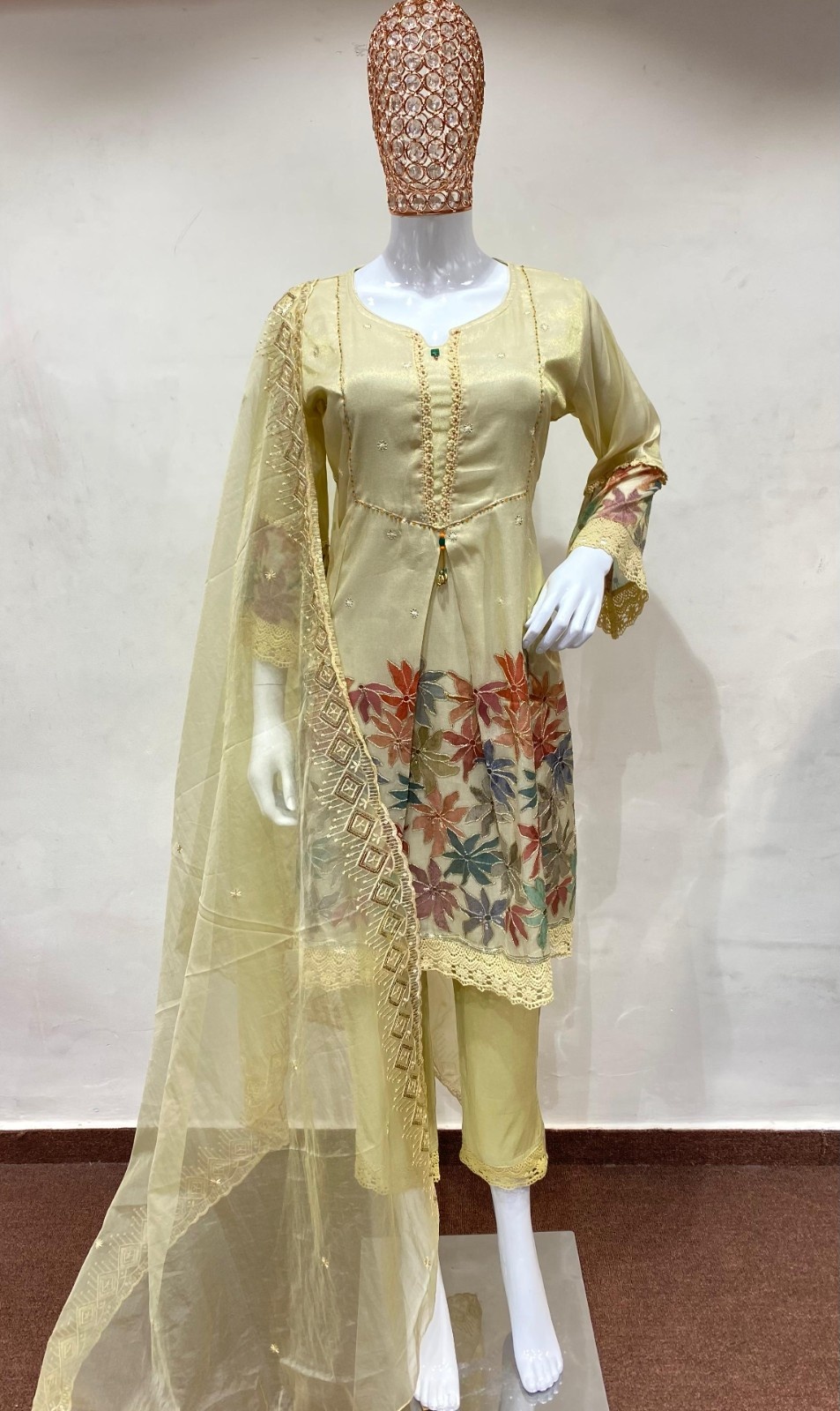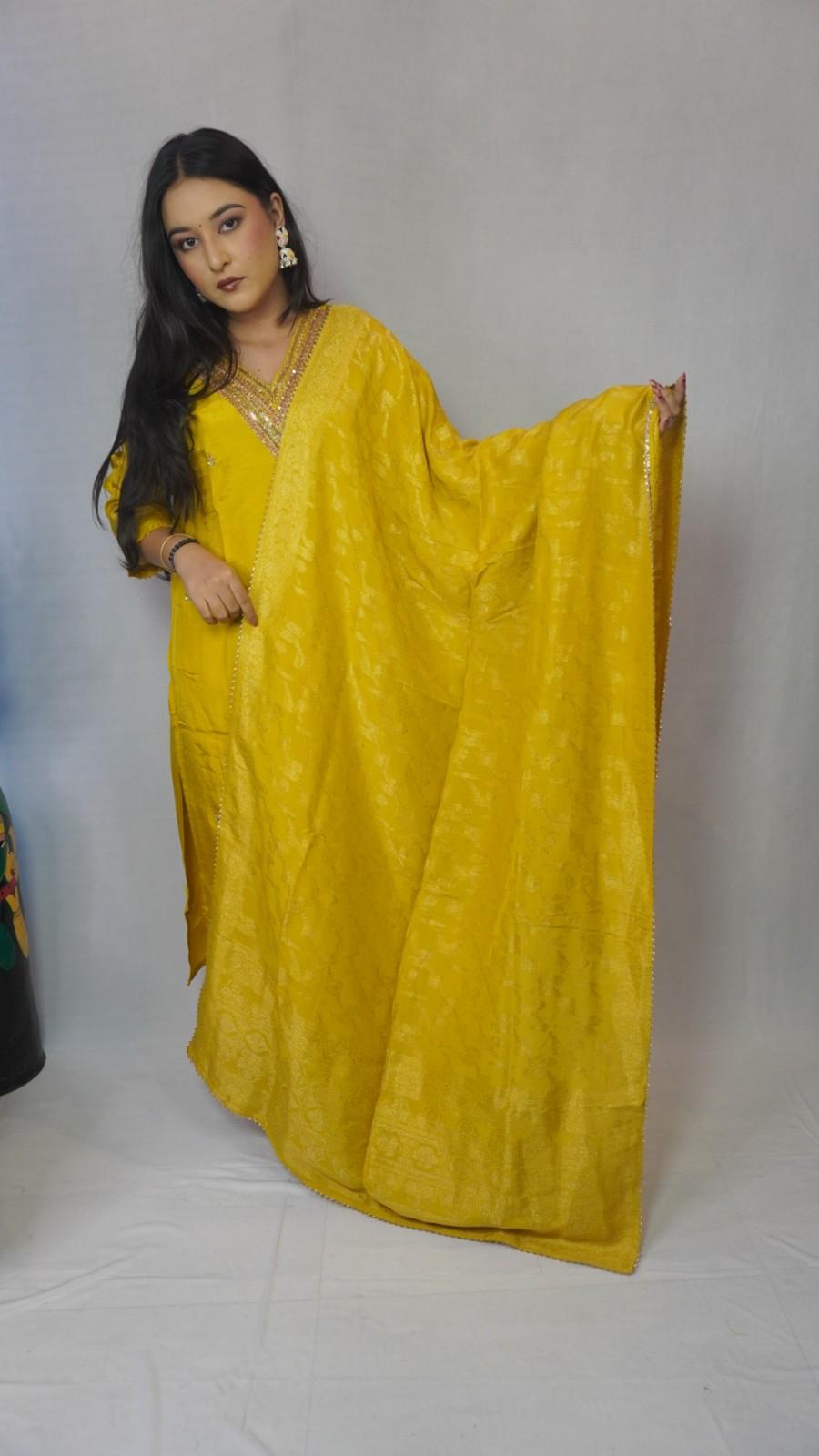 Yellow Crape Kurti Set wi...