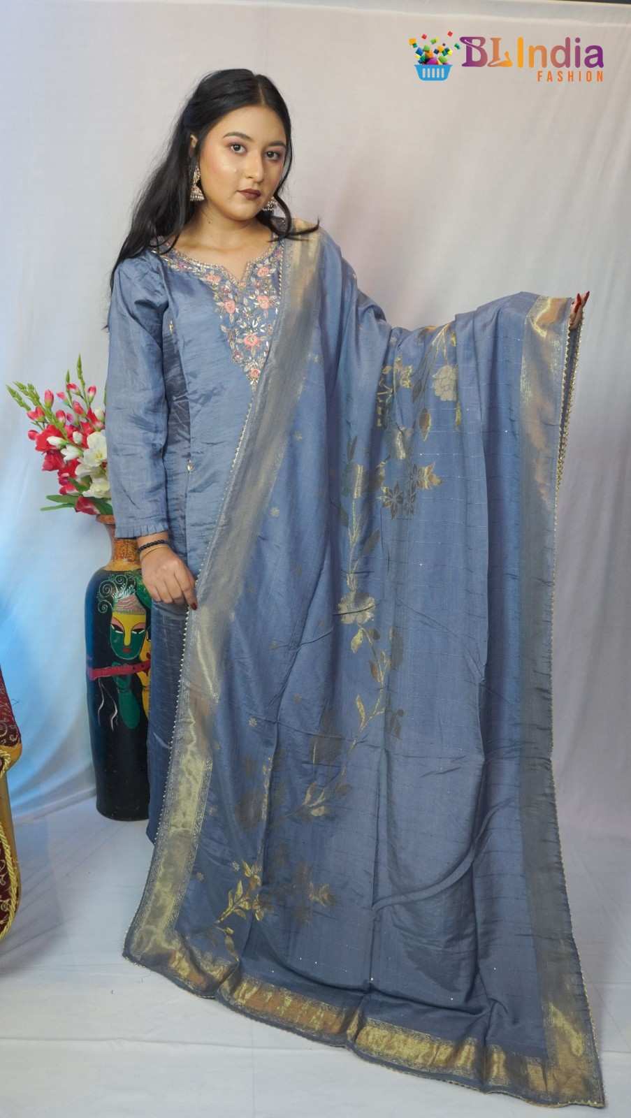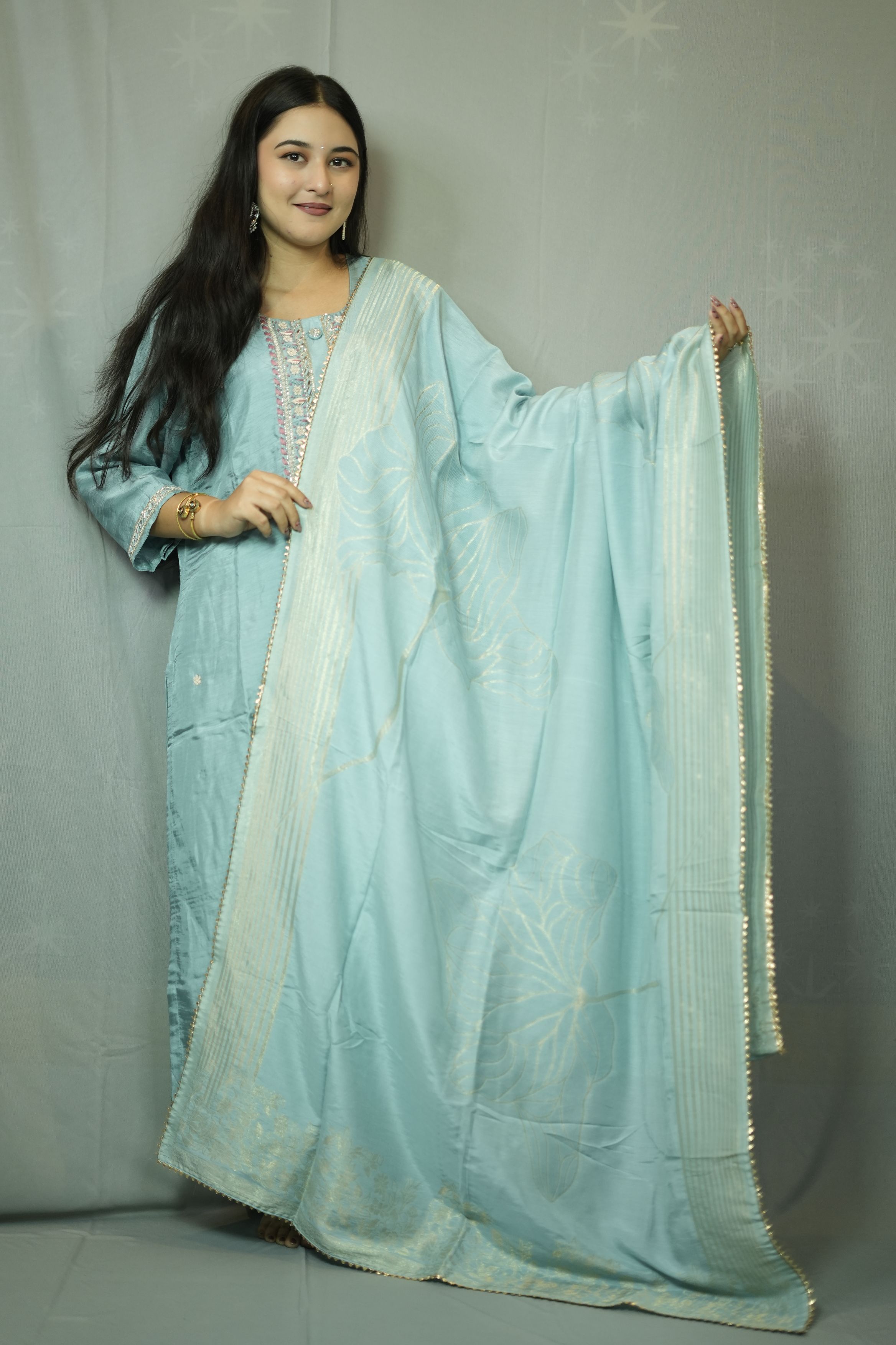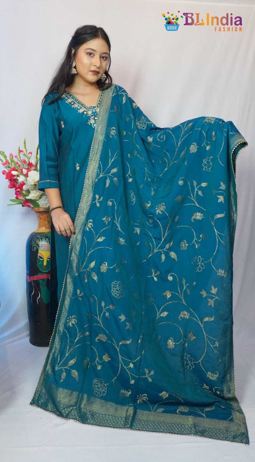 Blue Dollo Silk Kurti Set...