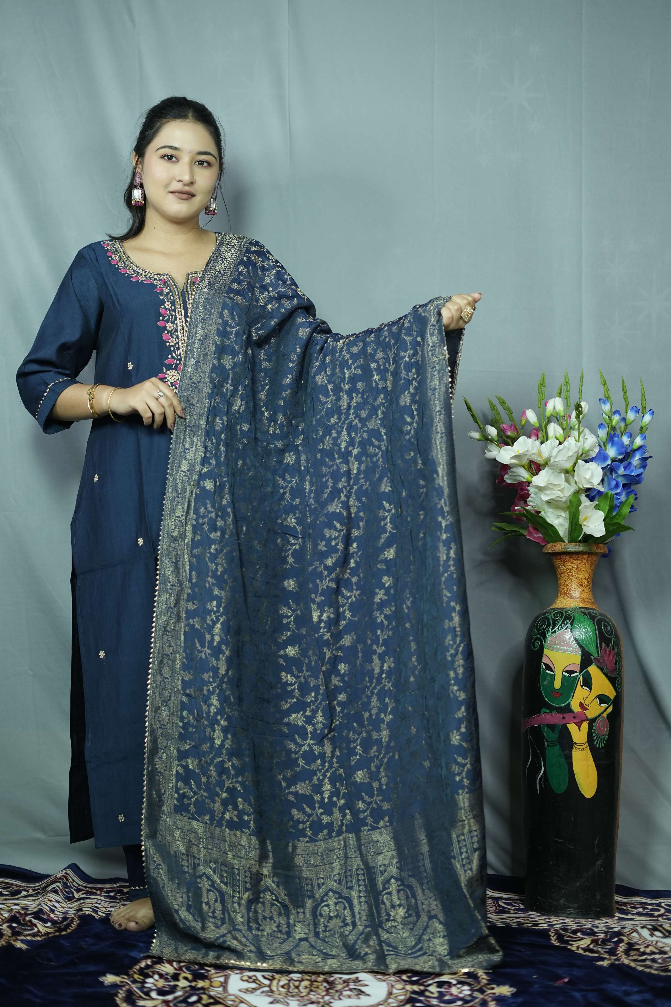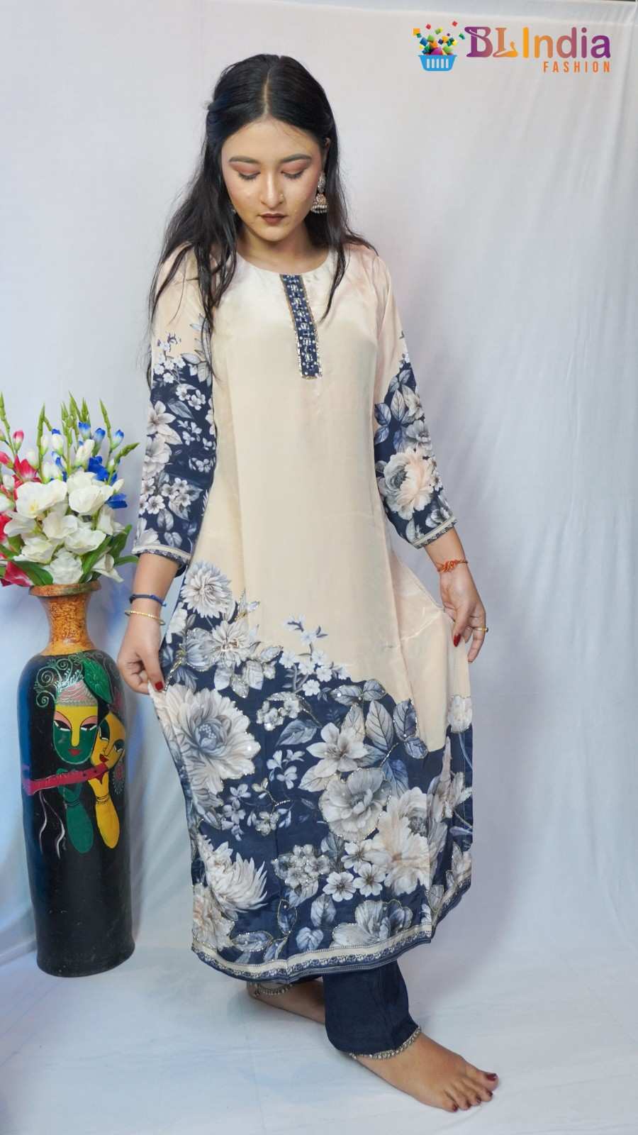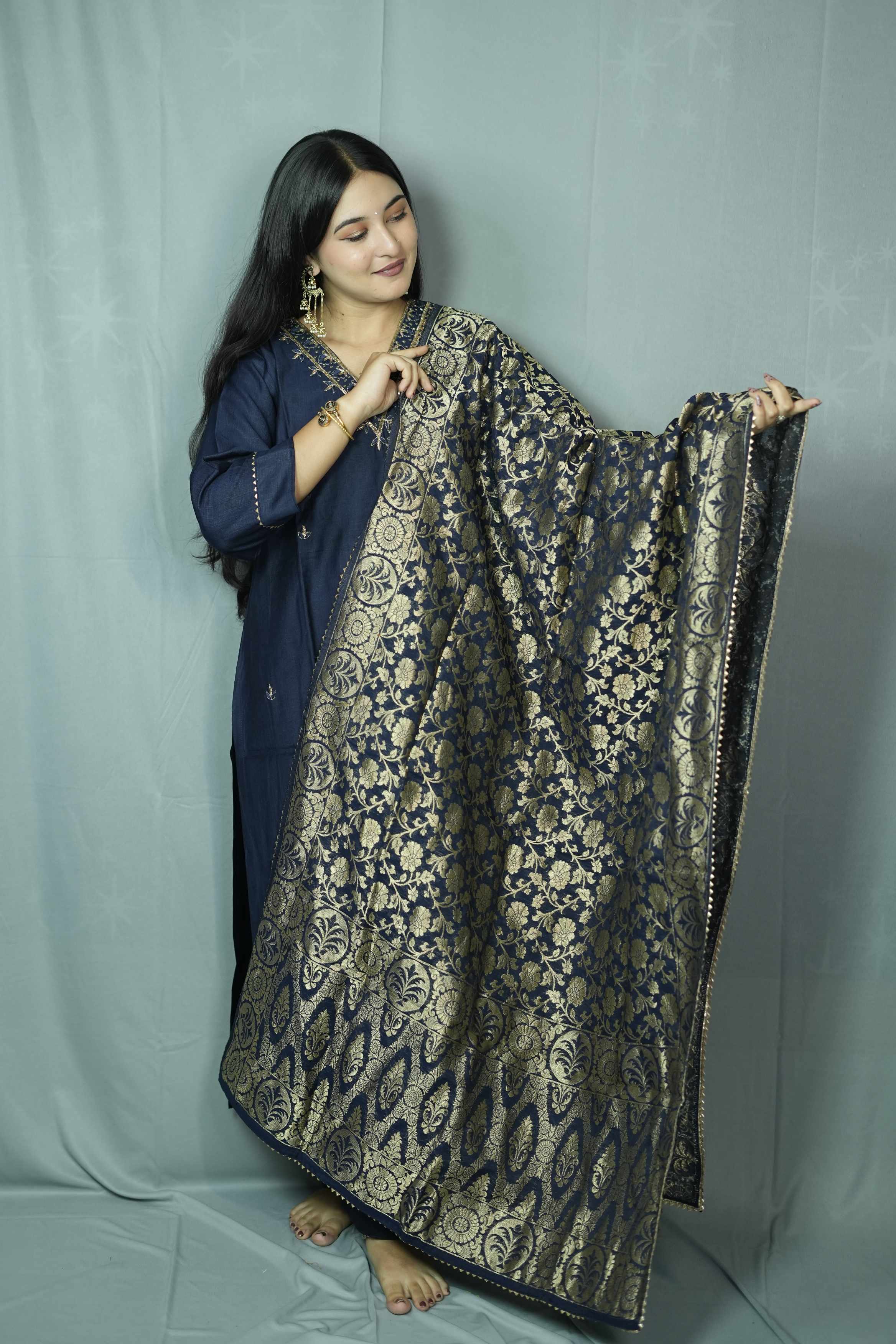 Navy Blue dolla silk kurt...