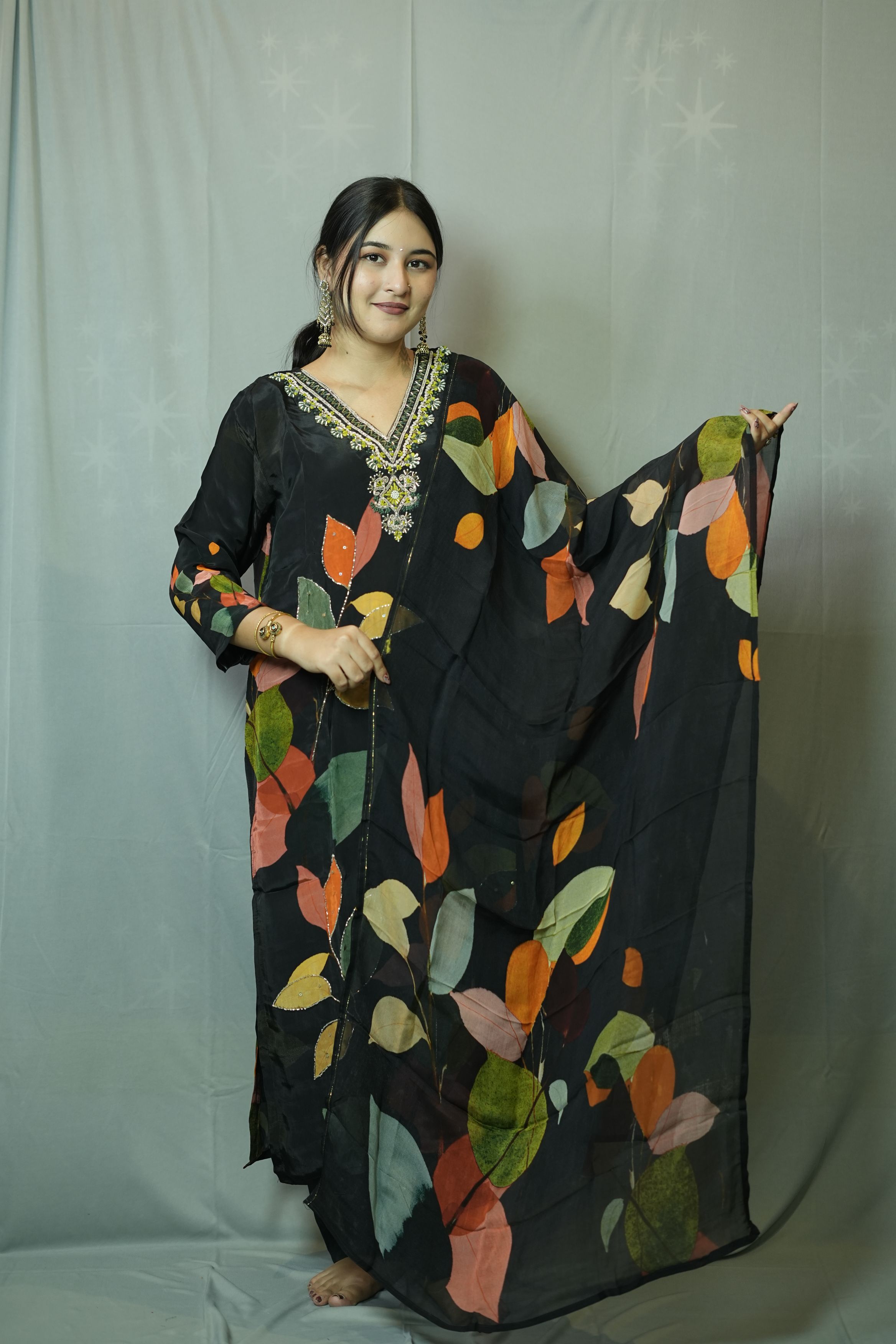 Embroidered V-Neck Kur...