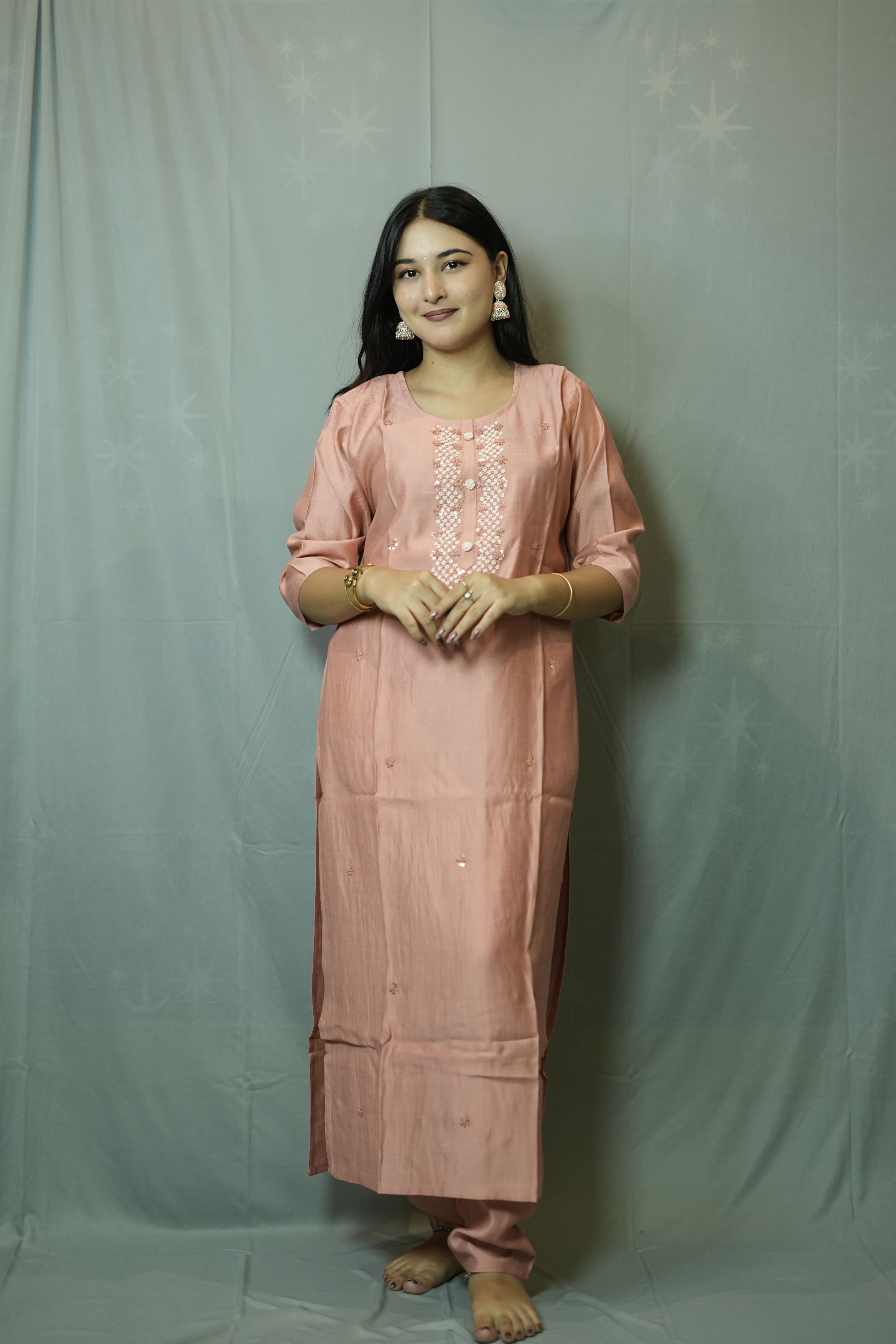 Light Pink Kurta Set with...