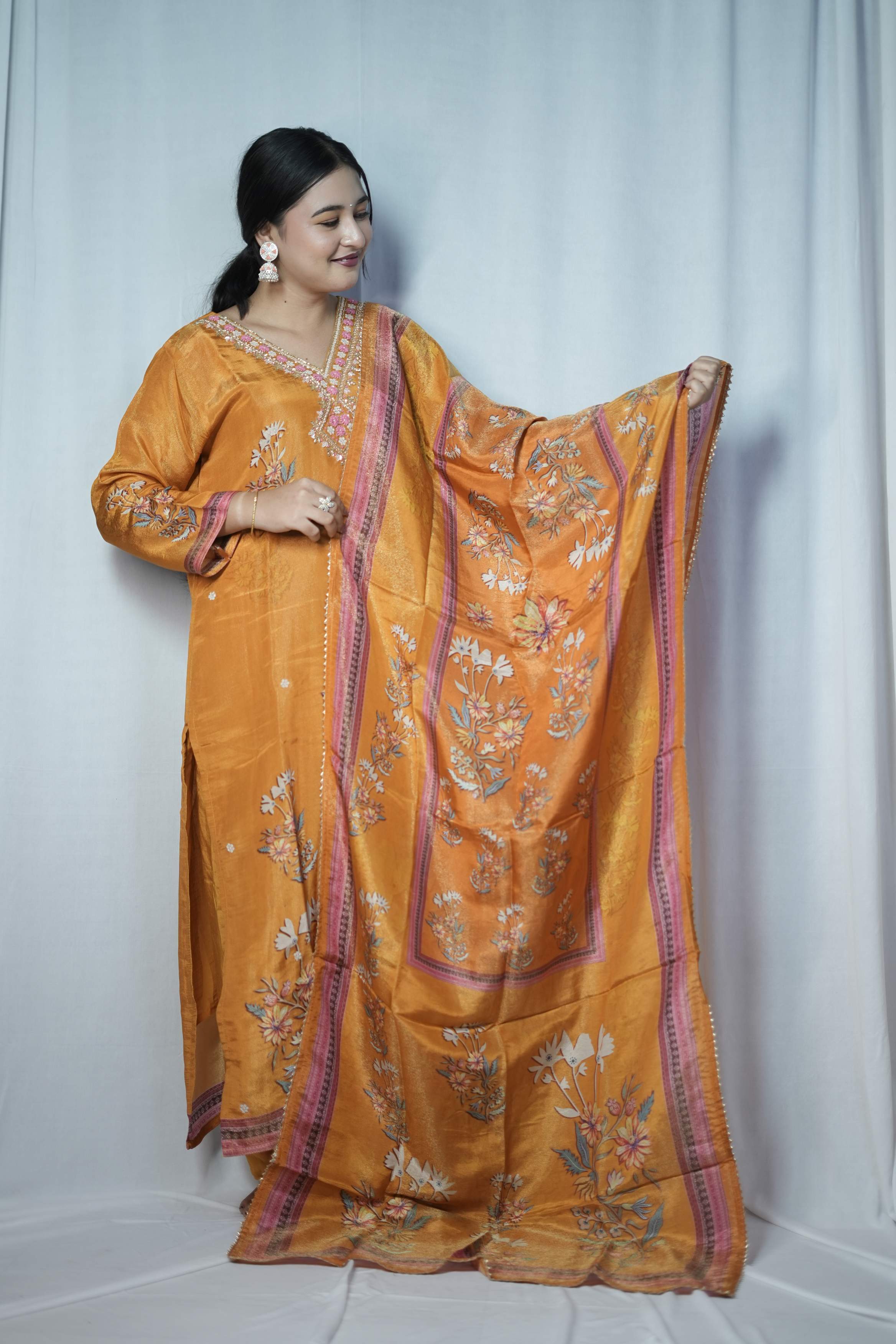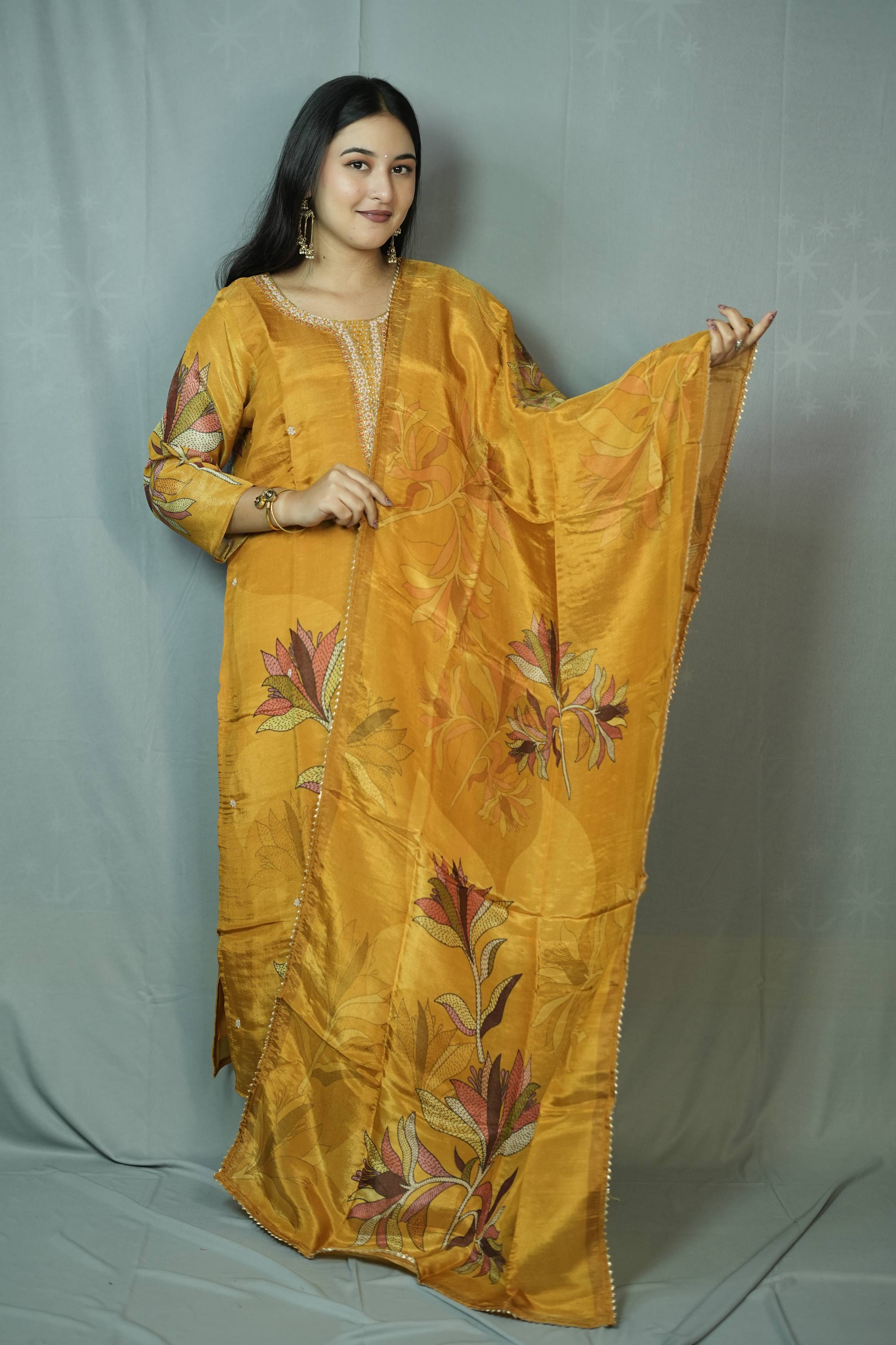 Orange Tissue Silk Kurta ...