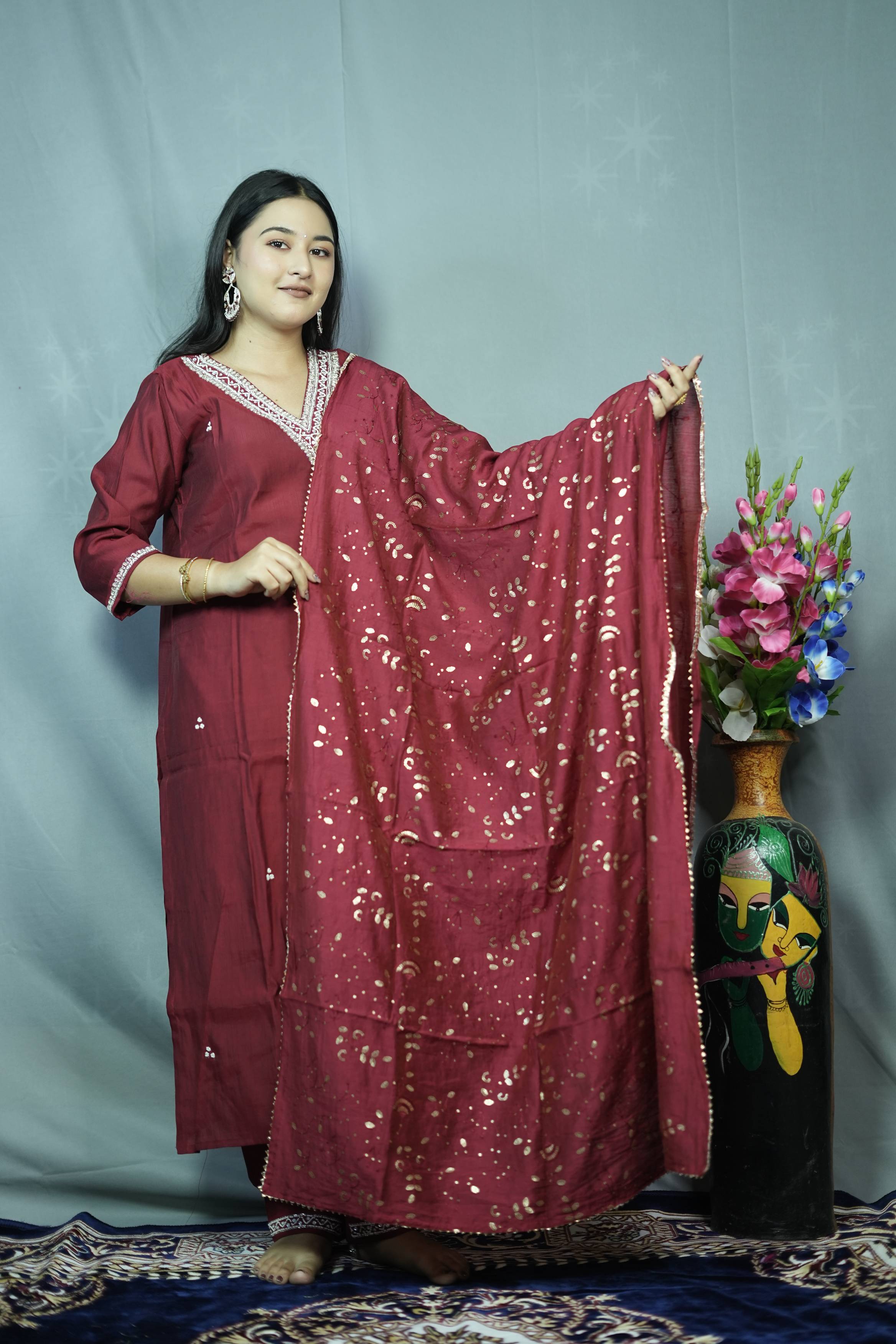 Maroon Dolla Silk Kurta S...