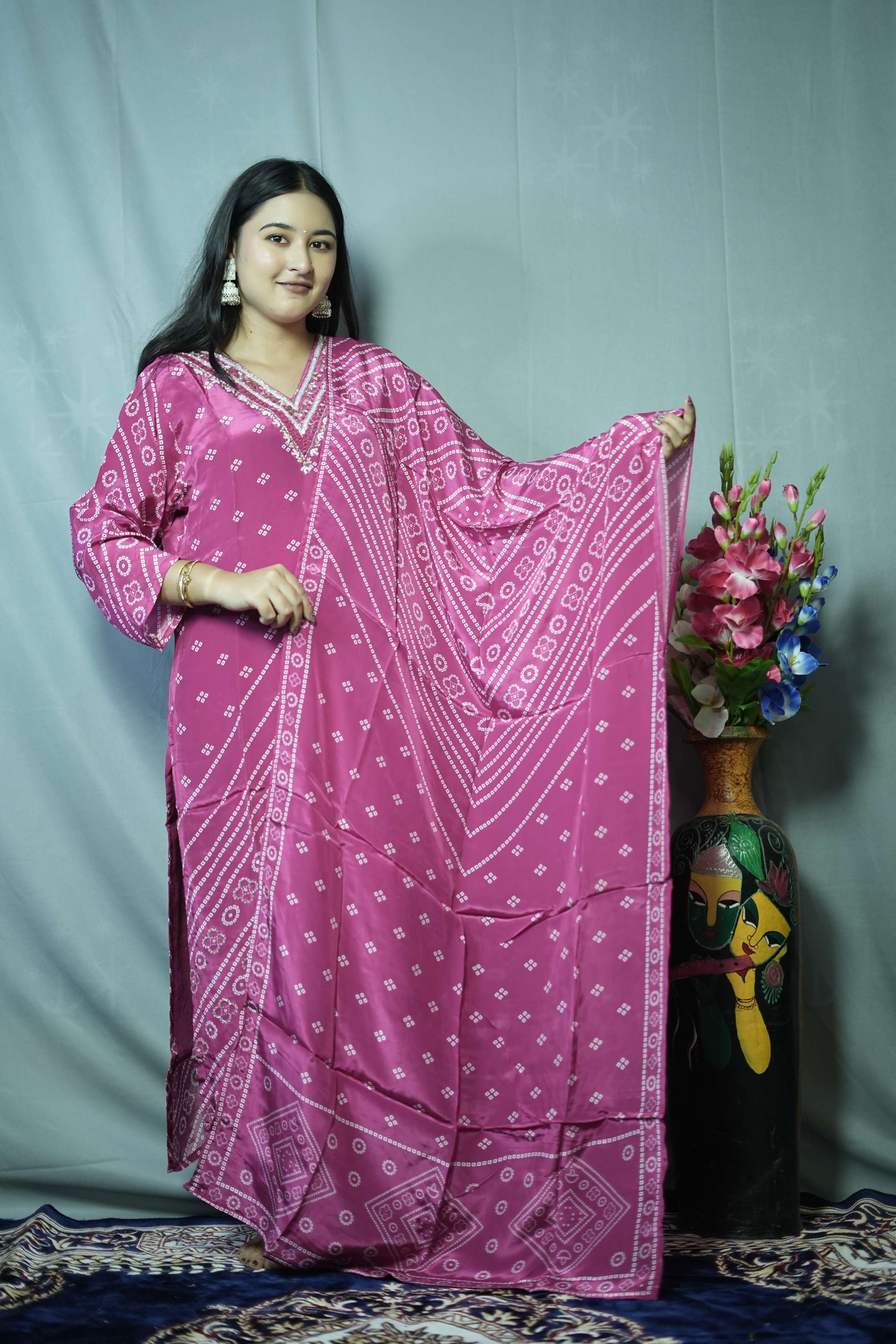 Pink Crape Bandhani Kurti...
