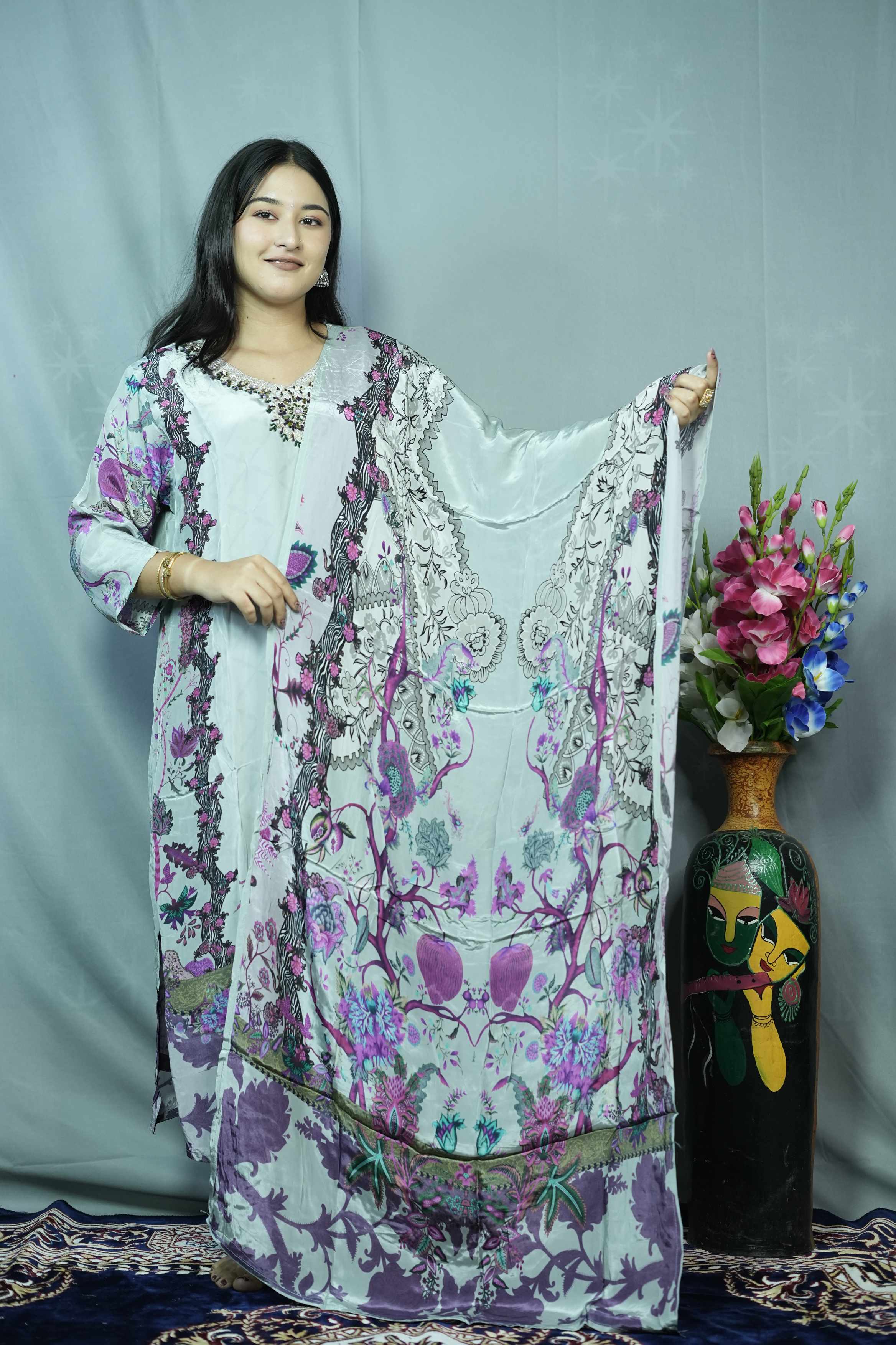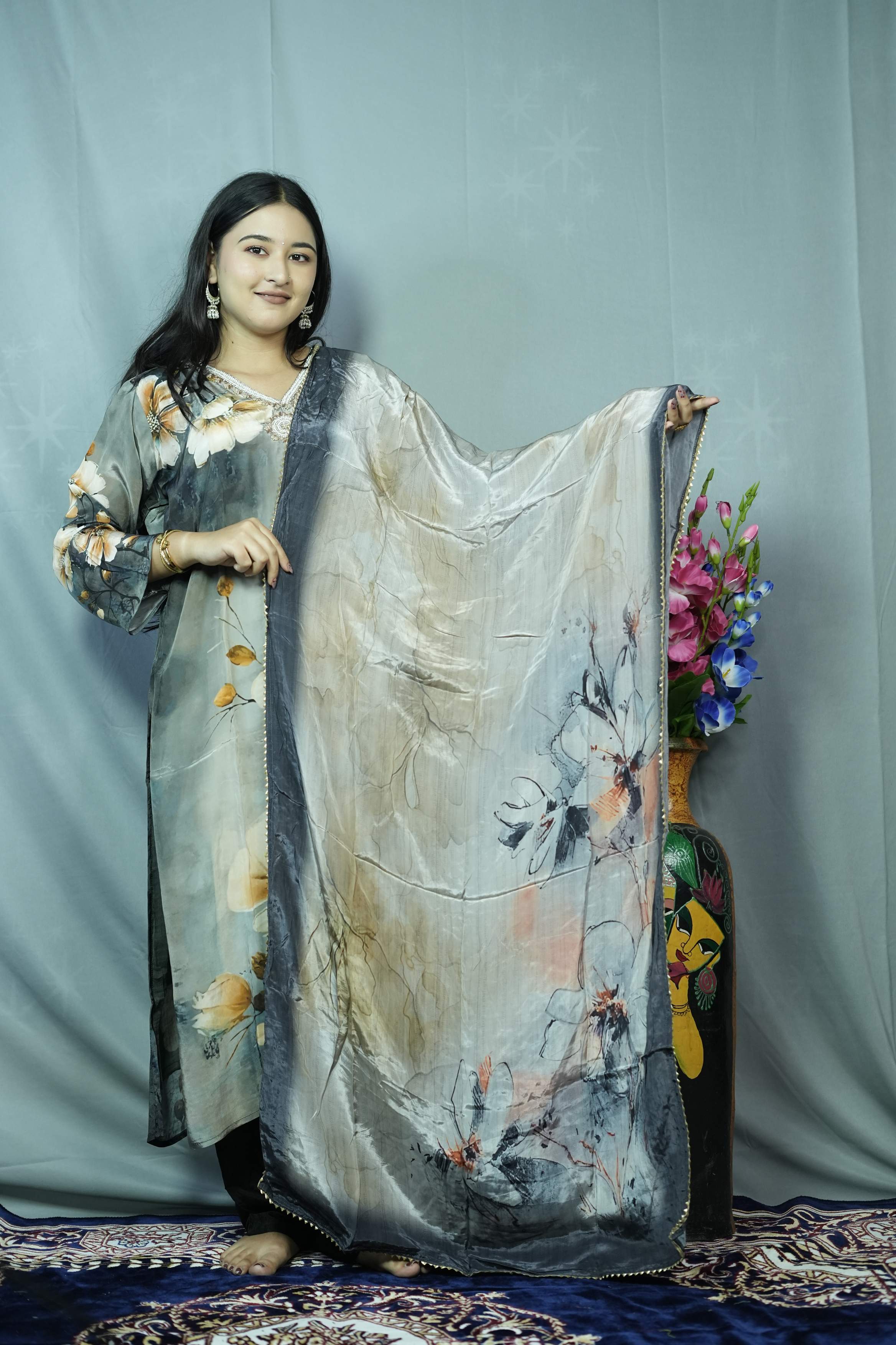 Light Grey Crape Kurti Se...