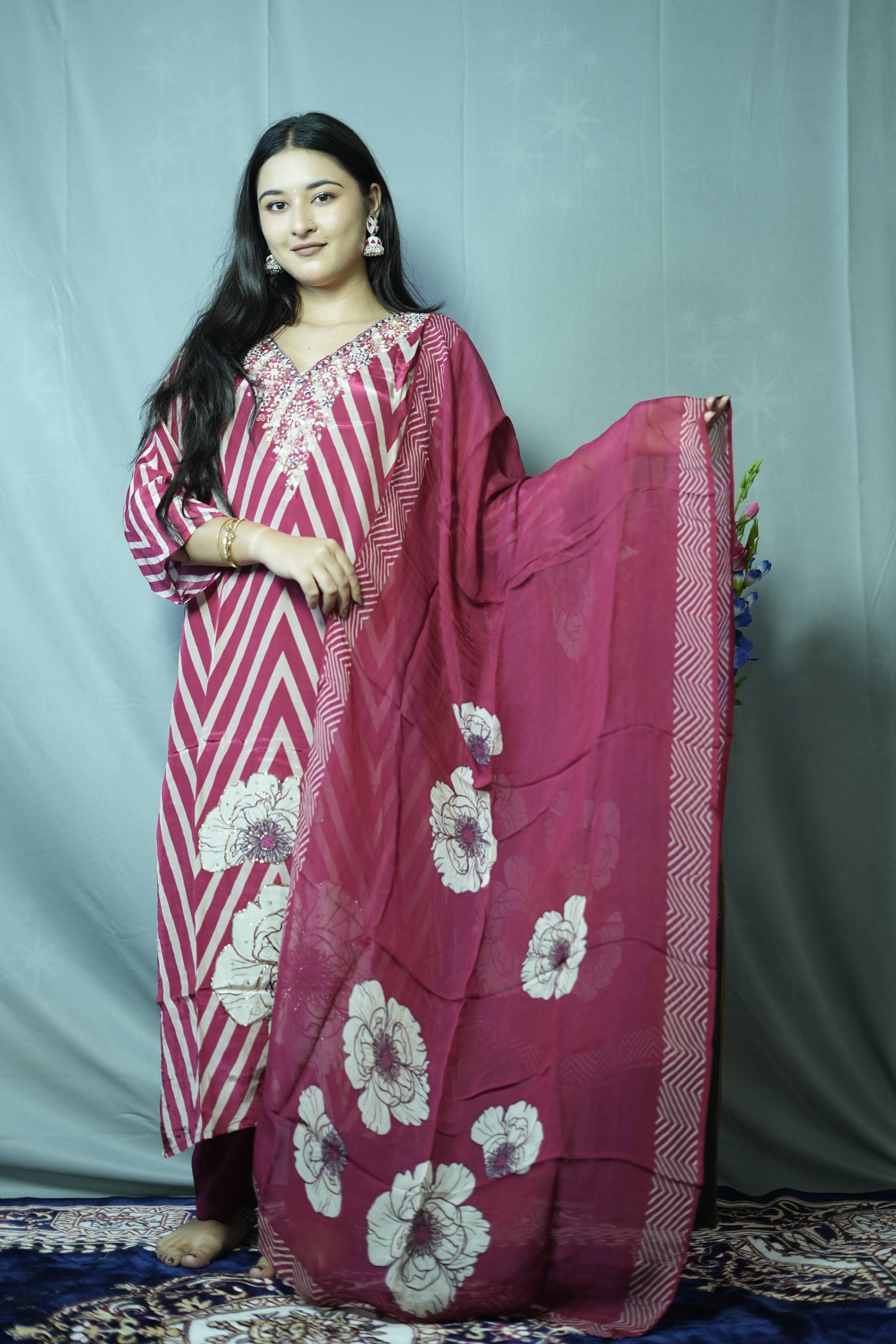 Pink Vatican Kurti Set wi...