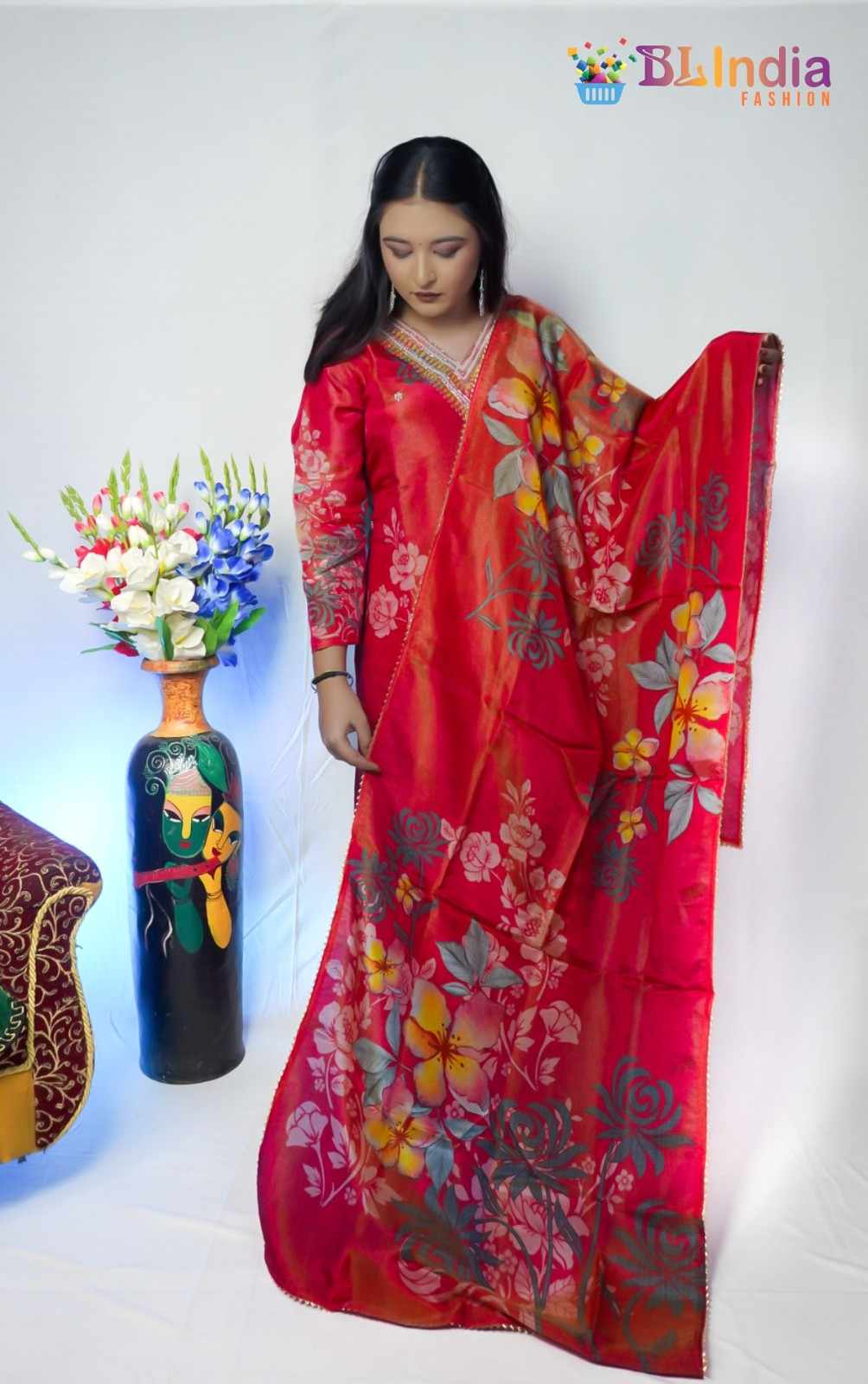 Red Floral Tissue Kurt...