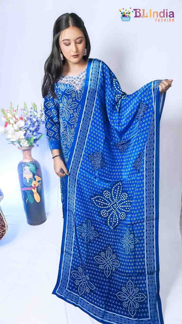 Blue Bandhani Print Crape...