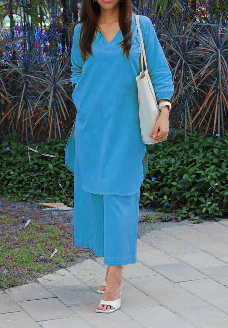 Teal blue kurti pant wit...