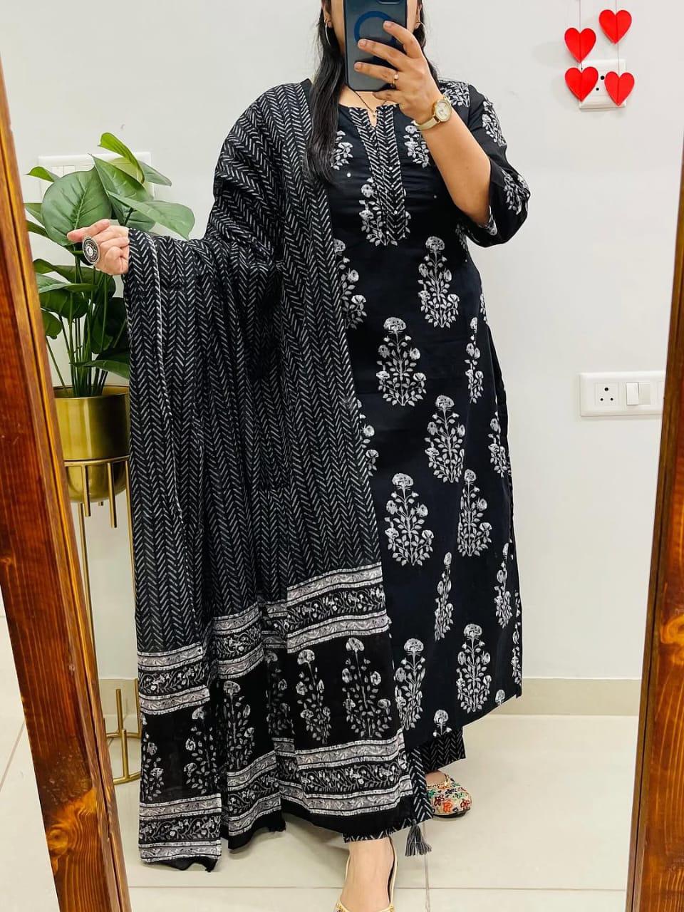 BLACK Pure Cotton kurti w...