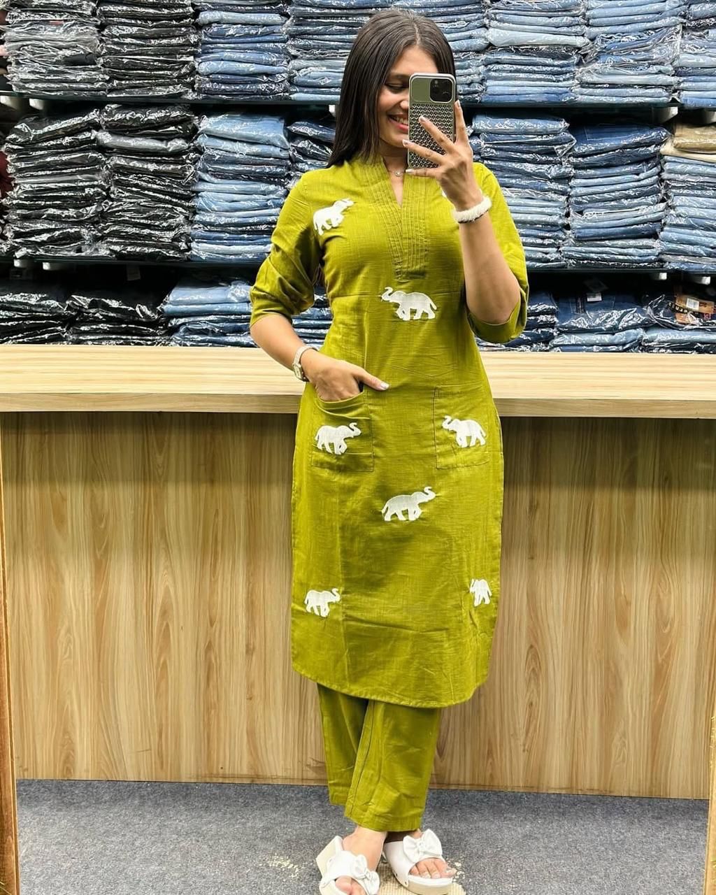 GREEN kurti pant with be...