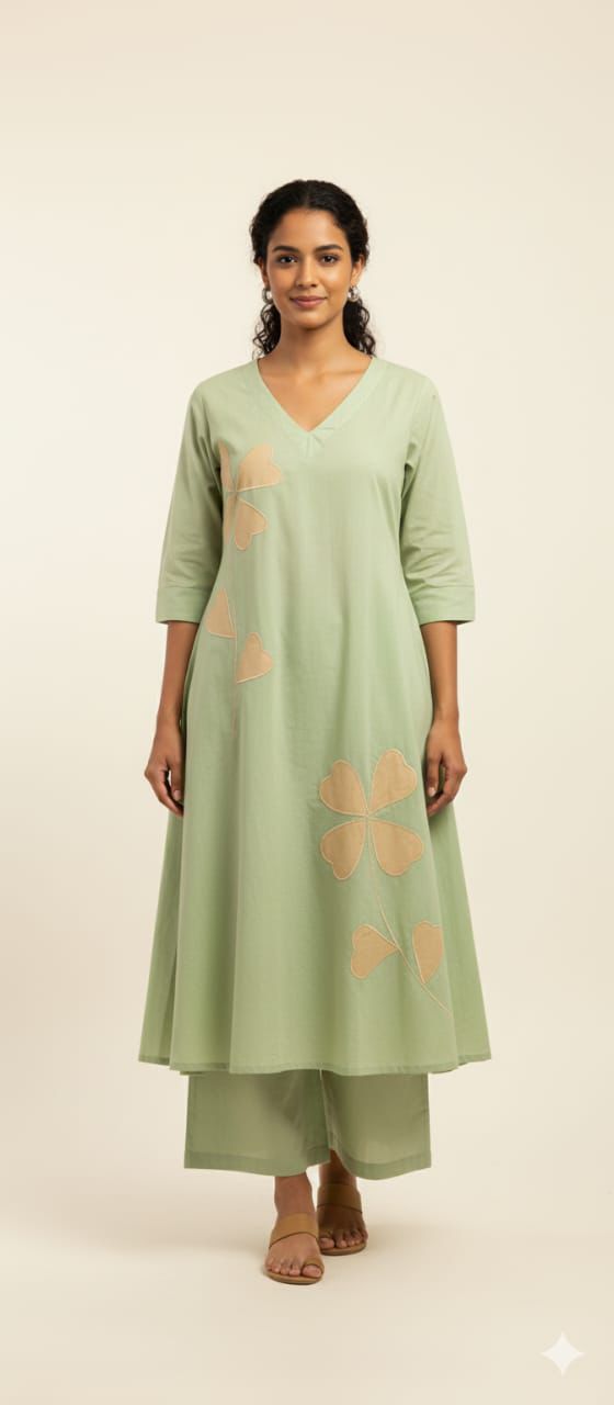 GREEN A Line Kurti Paired...