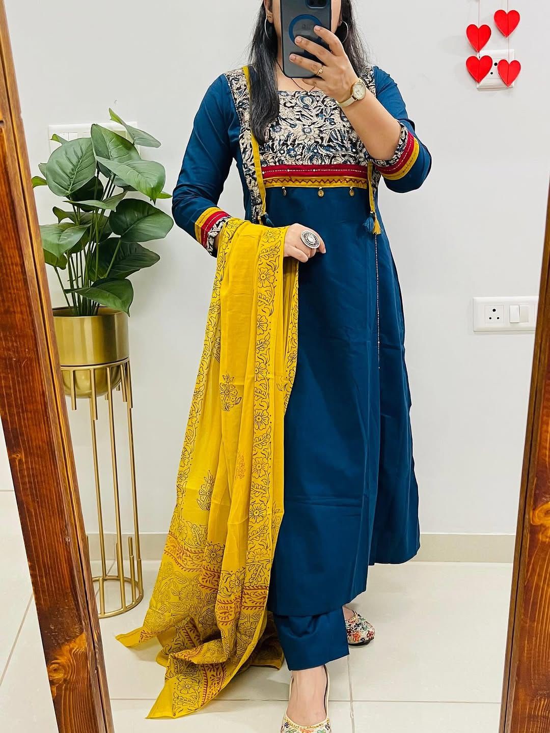 Teal blue kurti pant wit...