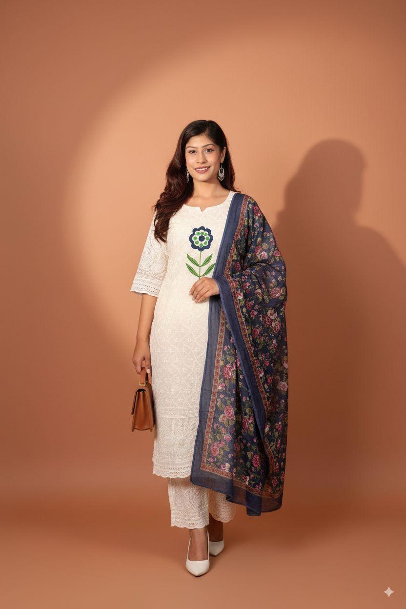 White Kurti Set with Pink...